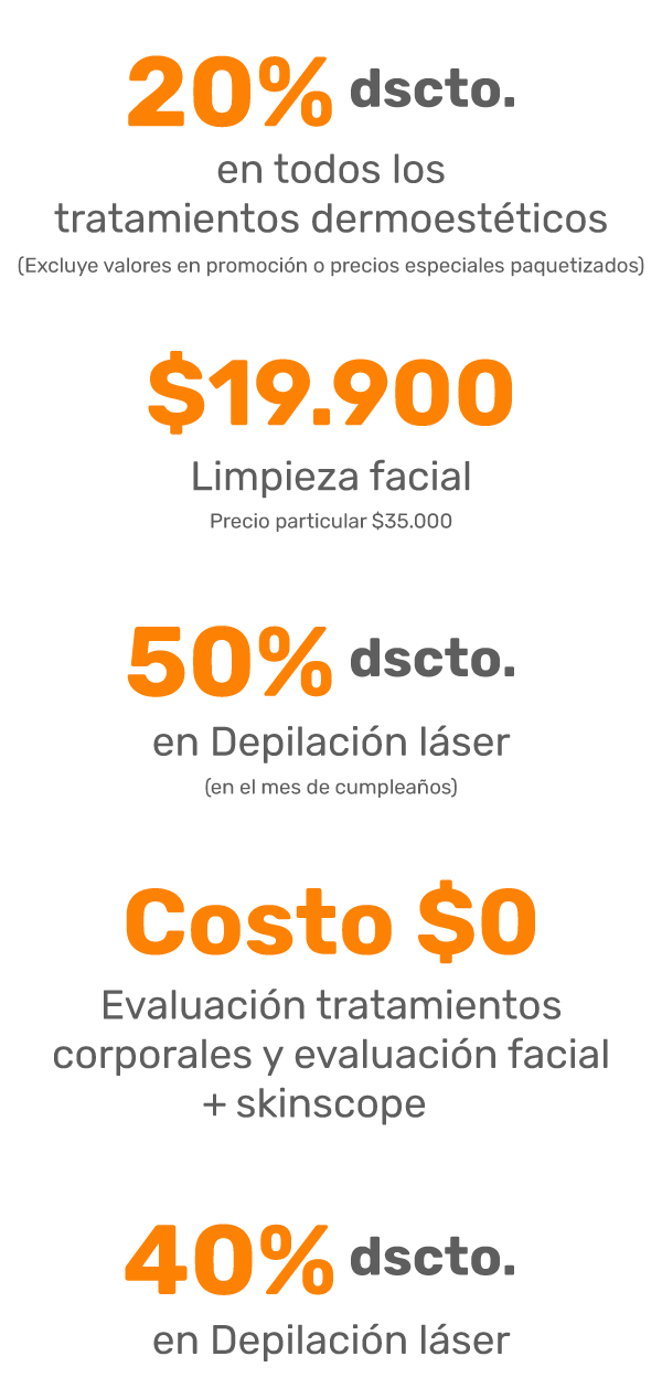 • Beneficios dermoestéticos válidos mostrando su carnet de identidad.