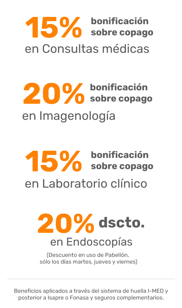 • Beneficios no aplica para prestaciones particulares. Solo son válidas para prestaciones convenidas con Fonasa e Isapres.